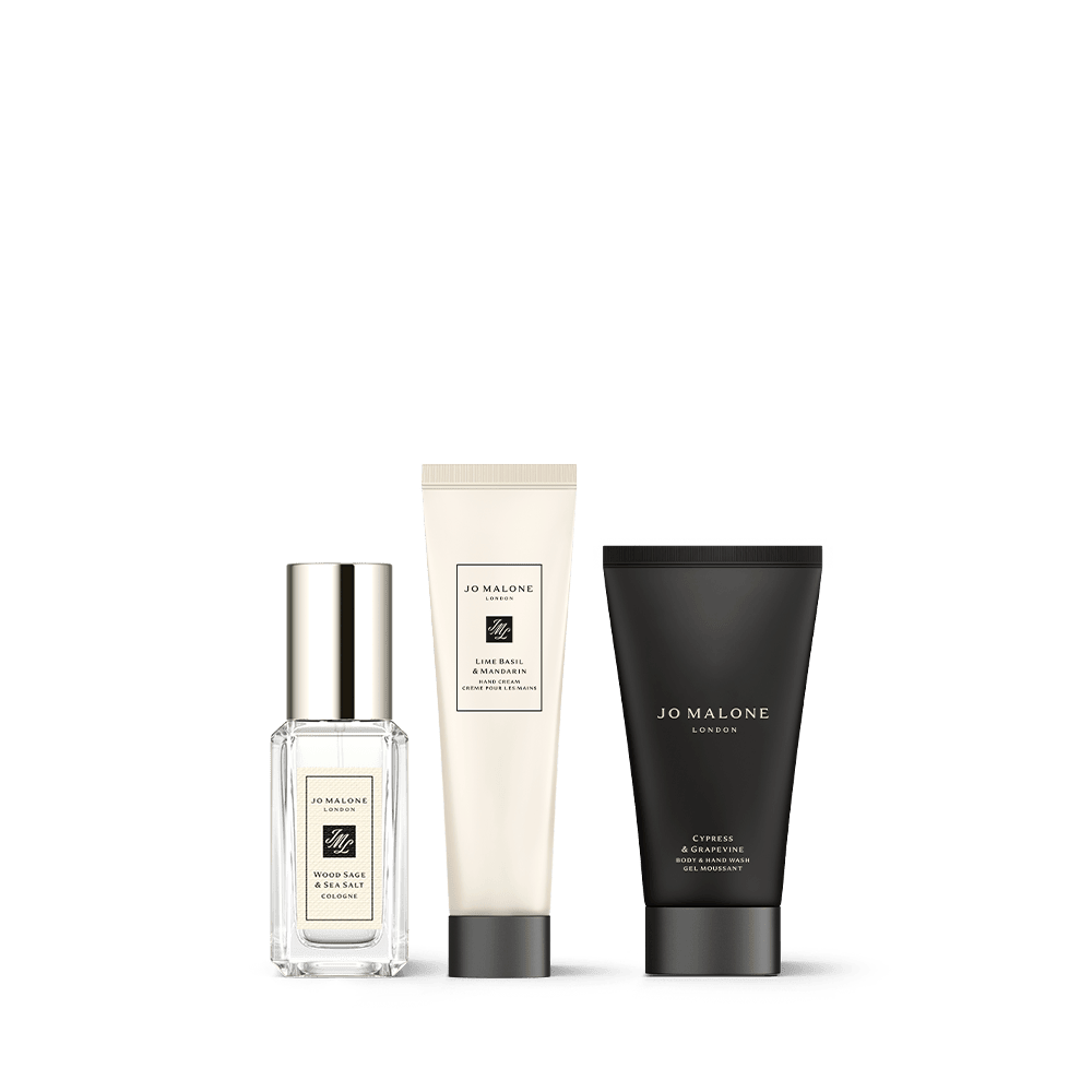 จัดโต๊ะสำหรับงานเลี้ยงเทศกาลด้วยคริสต์มาสแคร็กเกอร์ตกแต่งและเต็มไปด้วยกลิ่นหอม ประกอบด้วยสามกลิ่นมินิ: Wood Sage & Sea Salt Cologne (9ml), Lime Basil & Mandarin Hand Cream (15ml) Cypress & Grapevine Body & Hand Wash (30ml).